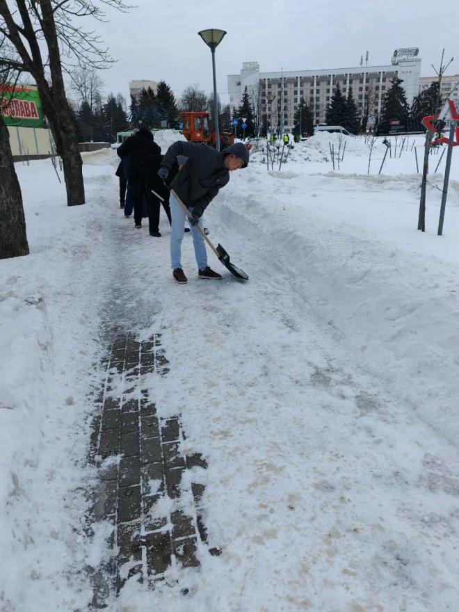 Продолжается декадник по уборке снега. Студенты геолого-географического факультета активно устраняют последствия снегопада не только на территории университета, но и за его пределами. Ребята помогли расчистить пешеходные зоны и общественные пространства города.