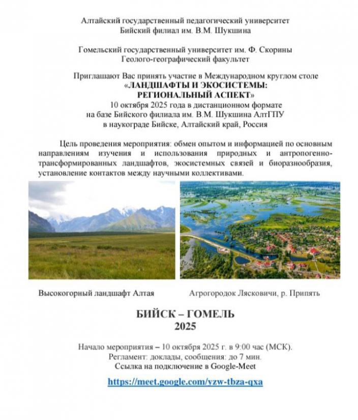 • Приглашаем принять участие в Международном круглом столе "Ландшафты и экосистемы: региональный подход"