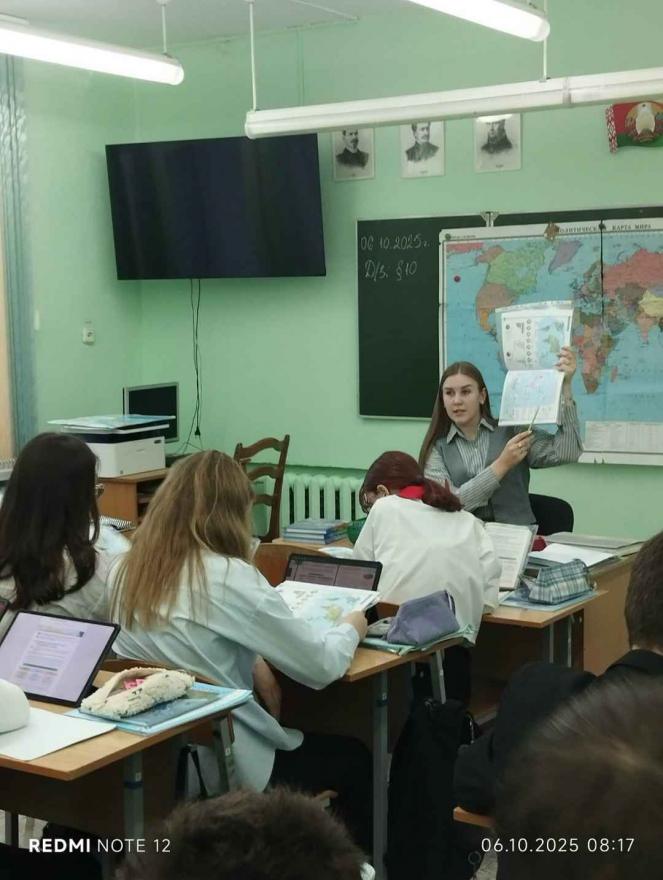 Студентка группы ГЭ-41 Левшунова Лилия походит педагогическую практику в гимназии 46 имени Блеза Паскаля города Гомеля, в которой географию преподает учитель-методист Семерная Светлана Сергеевна.