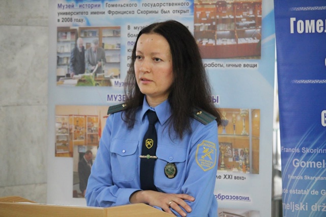 📝 В рамках Единого дня информирования в Гомельском государственном университете состоялась встреча студентов и сотрудников с заместителем начальника отдела таможенных операций и контроля 1 Гомельского таможенного поста Ольгой Жданович.