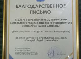 В рамках семинара были вручены благодарственные письма от отдела спорта и туризма Гомельского горисполкома учреждениям-участникам республиканской туристической акции «Вандруй.Адчуй.Натхняйся».