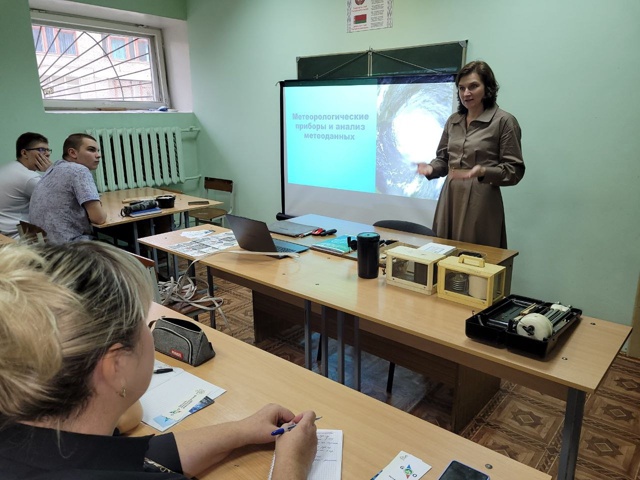 4 ноября доцент кафедры геологии и географии Татьяна Григорьевна Флерко познакомила юных географов с метеорологическими приборами и особенностями анализа метеорологической информации