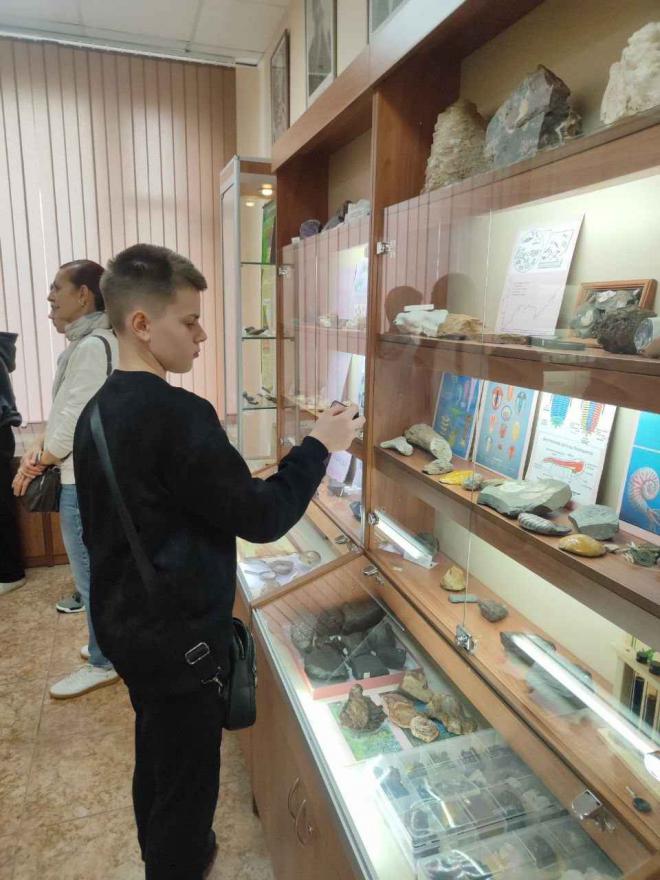 В геологическом музее познавательно и интересно познакомил с коллекцией минералов и горных пород, уникальными экспонатами Алексей Пикас. Желающие попробовали на вкус каменную соль и ощутили запах нефти.